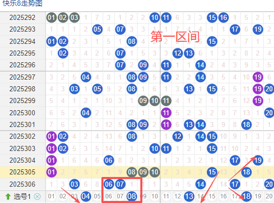 上期一区开6奖号(03.06.07.14.17.20)上期回顾一区开6个奖号一区间的奖号在上期呈现了不变的趋势,本期先来看号码04具有一定的间歇性,近期比如有时会间隔 3 到5期次出现,整体出现频率较一般,号码08活跃度近期较热。有一定的间歇性,间隔上来说的话还是很稳定的,整体走势有一定的波动性,没有明显的冷热趋势变化,出现的频次近期比较热.号码13活跃度相对较稳定,没有明显的连续出现态势,偶尔间隔多期会出现一次整体表现较热近期出现的频次比较活跃。