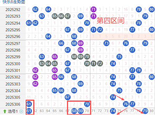 上期四区间开出了4奖号(61.70.76.77)上期的四区开4个奖号呈现了一个递增的趋势,开出的奖号7头回补3个,6头开也是回补了1个,先来看号码61在近 30 期内属于不是很稳定的号码,近期出现频率相对还是比较冷的,偶尔会间隔多期后出现一次,这个号码要注意防守,号码68具有一定的间歇性活跃度较热比如有时会间隔 3到4期就再次出现,也有时会间隔多期,近期整体出现频率比较热,近期还是要关注的.号码74活跃度近期比较温热,有一定的间歇性。活跃度近期不算稳定,整体走势有一定的波动性.