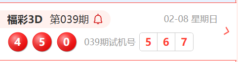 福彩3D第039期开奖结果为:450