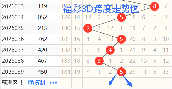 依次是25435跨度,按照路数转换关系来看,那么跨度我们暂定369147跨 ,本期个人比较看好6 4跨。