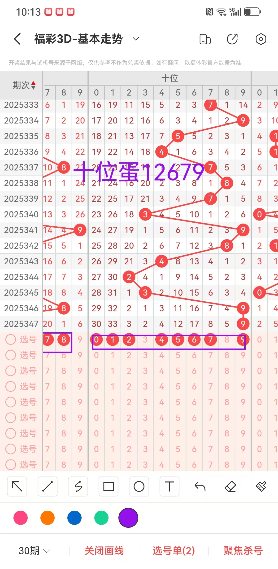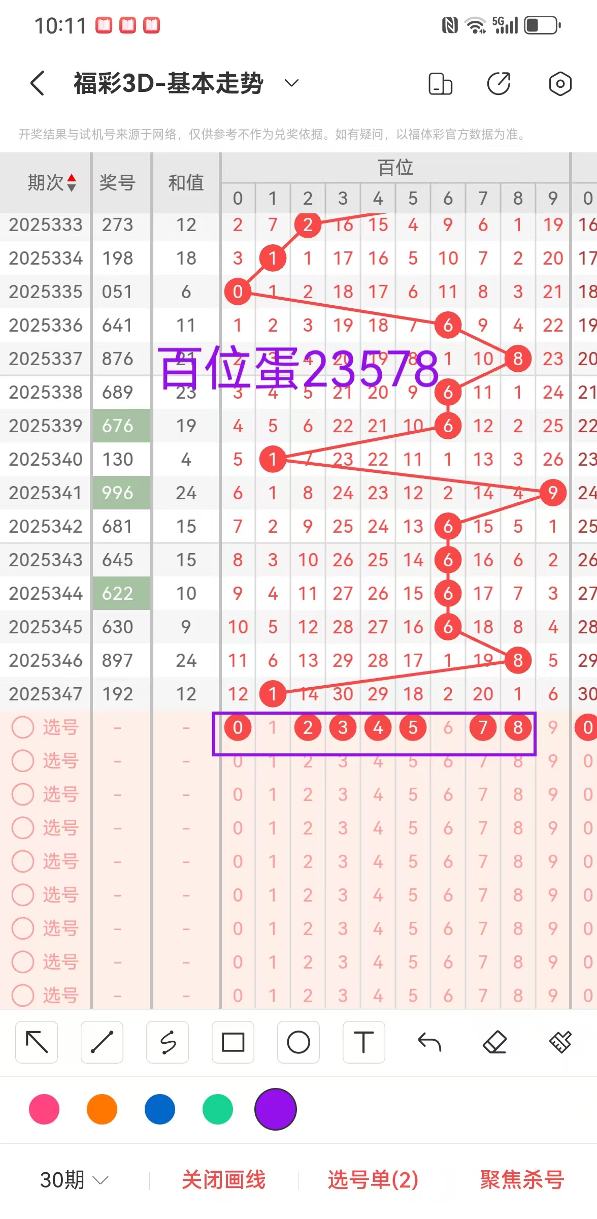 ②个位大小比:近5期大小比为2:3,大号依次开57,大号中奇偶比为2:0,小号依次开出202,小号中奇偶比0:3,通过对比分析得出(678123)有可能开其一
