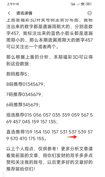 上图是上期福彩3D号码分析文章截图,我最后推荐的胆码,8码,7码,6码全对,推荐的单式直选也猜对了537。