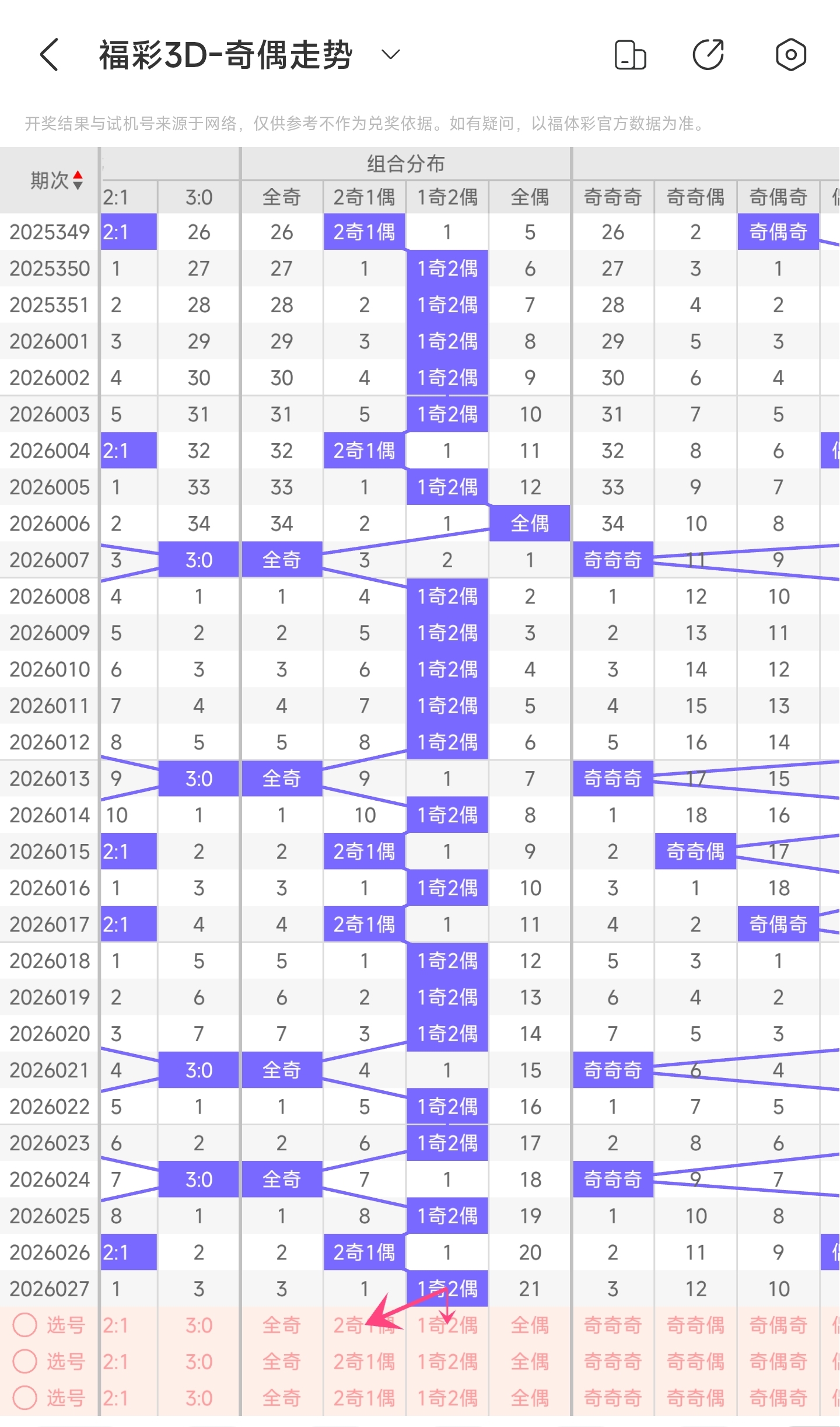 三、通过奇偶走势分析: