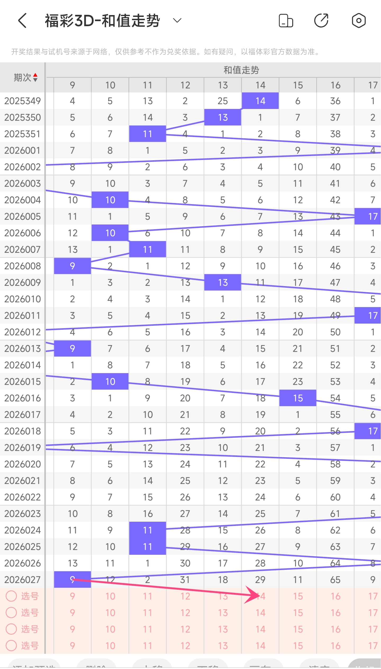 一、通过和值走势分析: