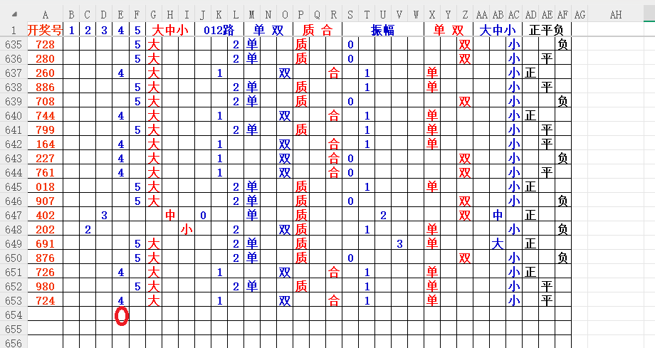 如上图56,大中小分析,中号3456出胆码,最低1个胆码,重点34