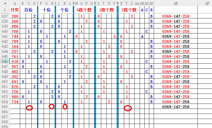 如上图2,012路分析,01路尾走比较好,关注0369147尾;