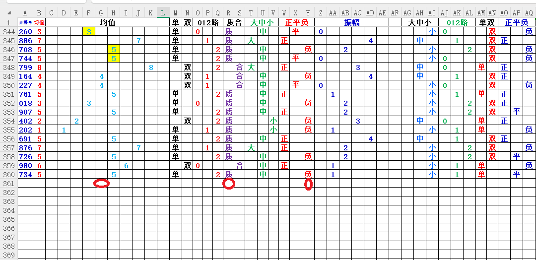 均值:就是开奖号每各数的总和除3,然后得到的余数,如果不够整除可以+1,-1,直到被整除得的数就是均值