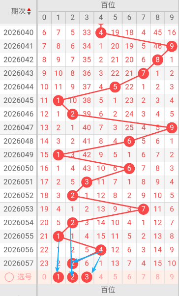 现在我给大家分析下,本期百位可能开出的号码,上期开出2,046期开出了2号码球,047期开出了9号码球,048期开出了6号码球,049期开出了1号码球,050期开出了6号码球,051期开出了3号码球,052期开出了2号码球,053期开出了7号码球,054期开出了2号码球,055期开出了1号码球,056期开出了4号码球,057期开出了2号码球,根据就近几期的走势和历史30期内的走势对比,我们可以先考虑本期可能会出小号,下面我给大家推存百位可能开出的几个号,个人比较看好123,百位我们就先暂定这几个号。本期重点关0-7之间的号码,同时关注遗漏期数较小的号码。按最近遗漏走势,开了遗漏期数较小之后开遗漏期数大的可能性比较大。