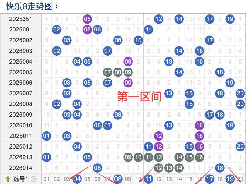 上期一区开5奖号(06.12.13.14.18)上期回顾一区开5个奖号一区间的奖号在上期呈现了递减的趋势,本期先来看号码04具有一定的间歇性,近期比如有时会间隔 3 到5期次出现,整体出现频率较热,号码08活跃度近期较热。有一定的间歇性,间隔上来说的话是很稳定的,整体走势有一定的波动性,有明显的冷热趋势变化,出现的频次近期比较热.号码17活跃度相对较稳定,没有明显的连续出现态势,偶尔间隔多期会出现一次整体表现较稳。