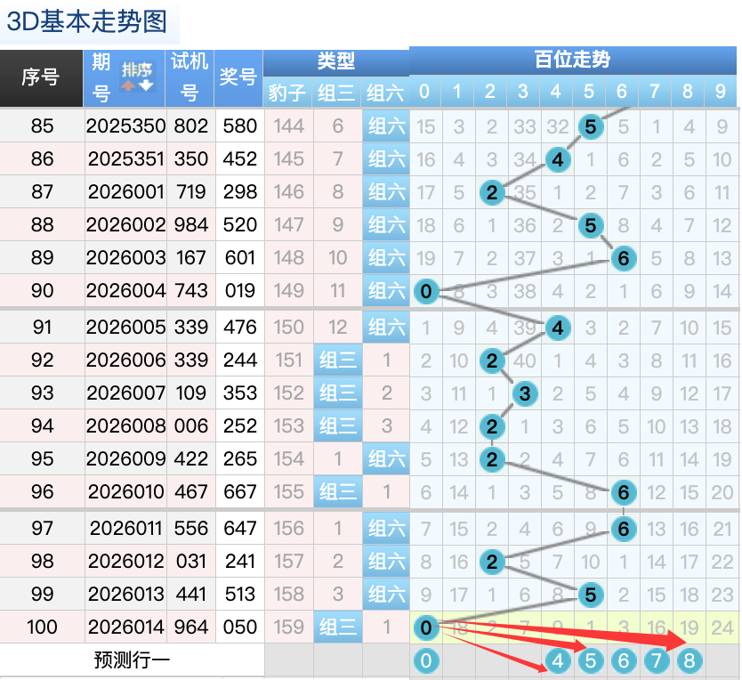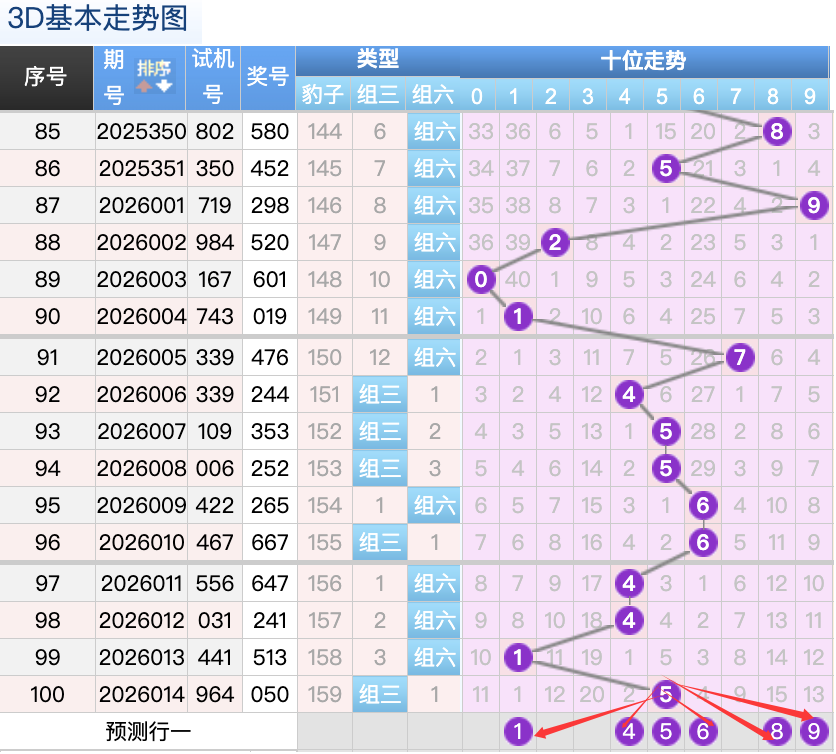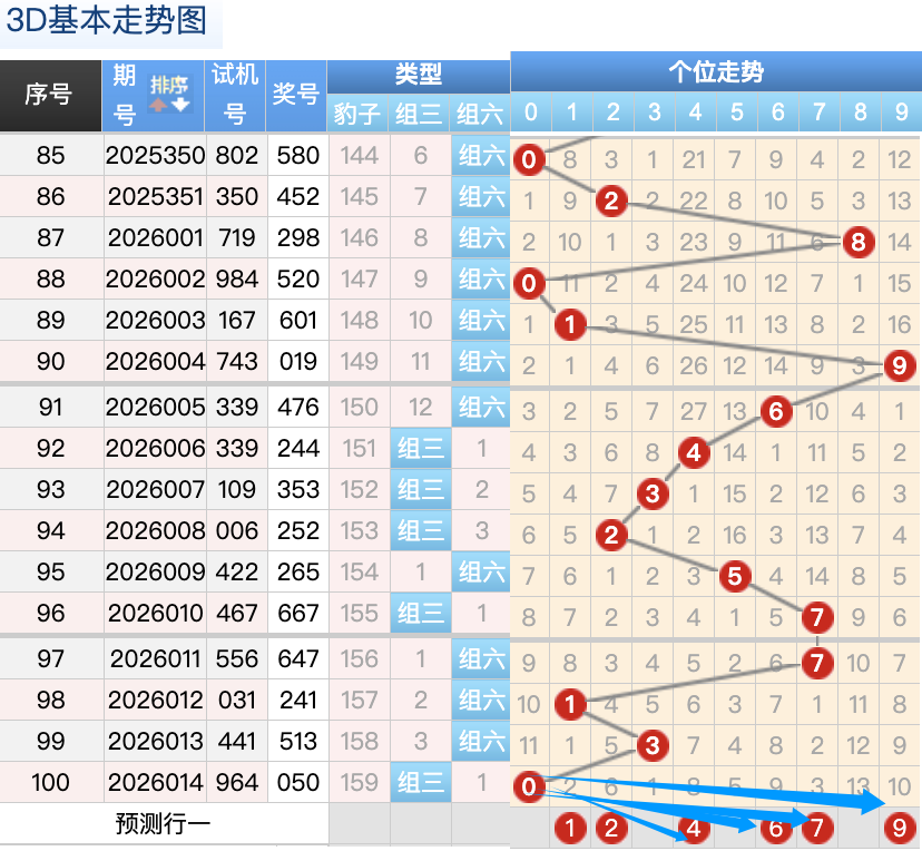 上期的3D个位开0号球,上期开出的是组三按照形态的话本期打组六形态,上期的0号球的落位是个位上的一个3跨的落位趋势,本期先来看1号球在个位还是有机会继续走出小号落位点这里要注意是一个顺位的落位点,6号球和7号球是这里的落位点是两个小周期号码的落位点这里注意防守一码就好了也是这里的两码走势都是非常好看的注意选择一码,再看9号球这里注意继续走常搭配的落位形态。