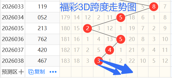 依次是52543跨度,按照路数转换关系来看,那么跨度我们暂定369147跨 ,本期个人比较看好6 5跨。