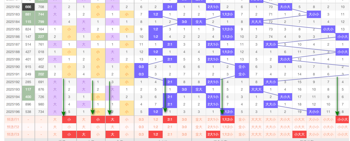 最近的5期当中十位大数出现的频次3次 小数出现2次 ,趋势平和 本期看好走大