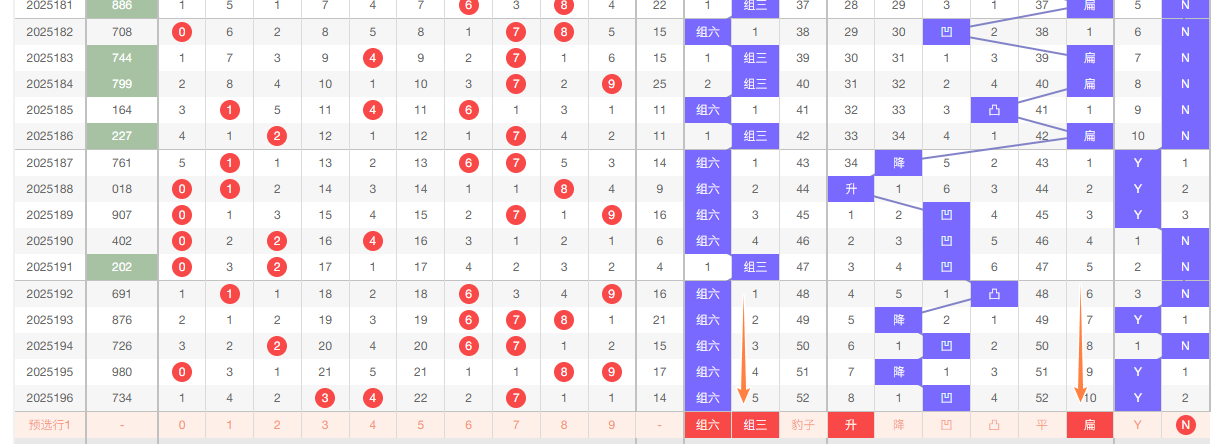 最近的5期当中个位大数出现的频次2次 小数出现3次 ,趋势平和 本期看好继续走小