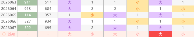 现在我们来回顾一下上期福彩3D,2026067期福彩3D开出奖号695,属性为组六。