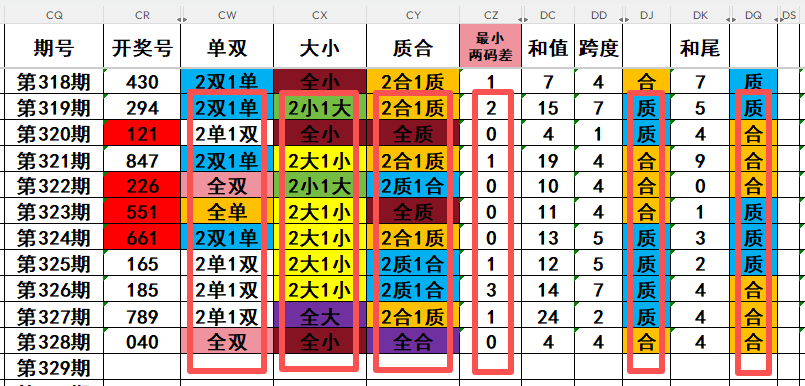 3,最近10天当中,两质一合开出3次,两合一质开出4次,全质数开出2次,全合数开出1次。近期需重点关注开奖号码两质一合的回补!