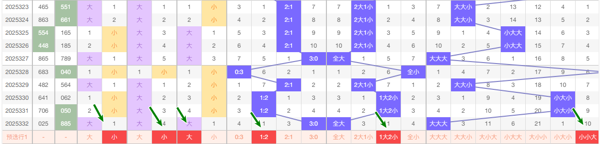 最近的5期当中个位大数出现的频次1  小数出现4 趋势平和 本期看好继续走大