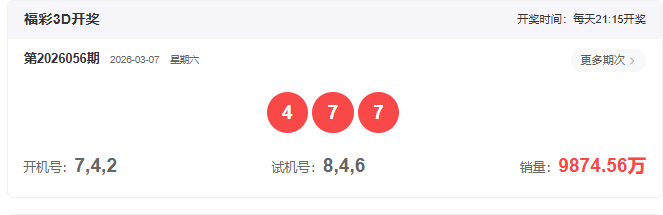 开奖号码:477
