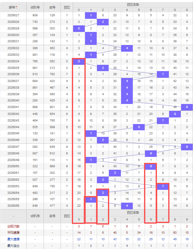 2026057期五码定位(百位、十位、个位):