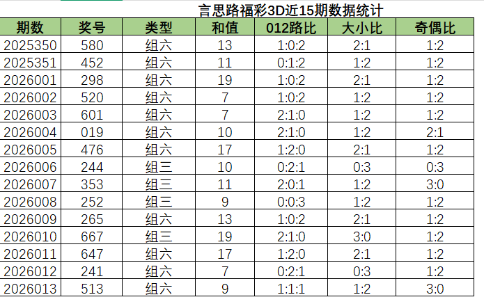 言思路福彩3D第2026014期,实用选号思路和方案分享
