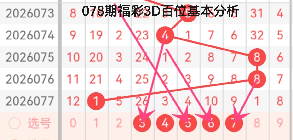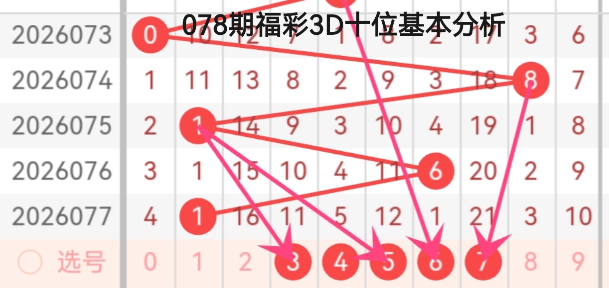 咱们用“定位法”进行078期福彩3D的分析: