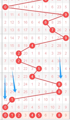 上图是福彩3D开奖号码从左到右定位第一位数字,我标注出来的蓝色箭头表示遗漏周期,上期开出数字0遗漏周期是12期,上上期开出数字1遗漏周期是21期,那么根据这些遗漏周期分析,本期第一位数字可以关注出遗漏周期小的数字012458,个人最看好数字458。