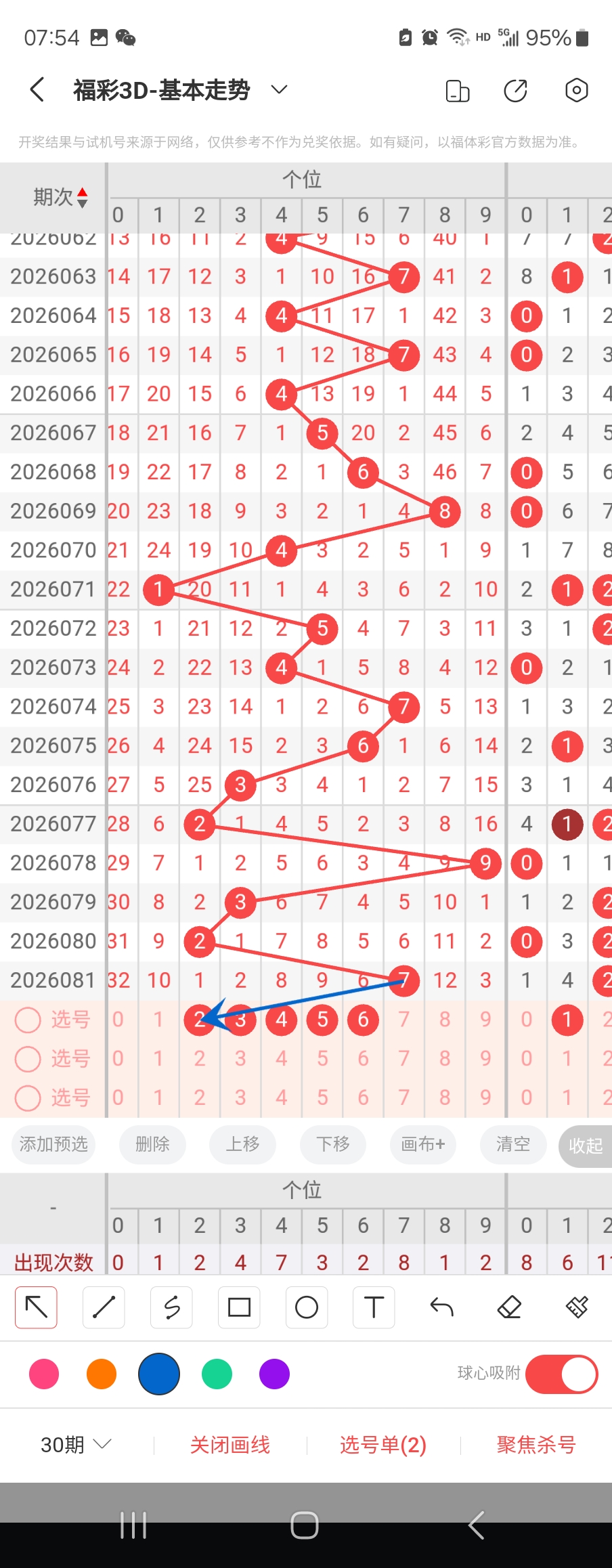 综合上期形态分布利于下期形态选号,约定12357为质,04689为合,147为1路,258为2路,0236为0路,