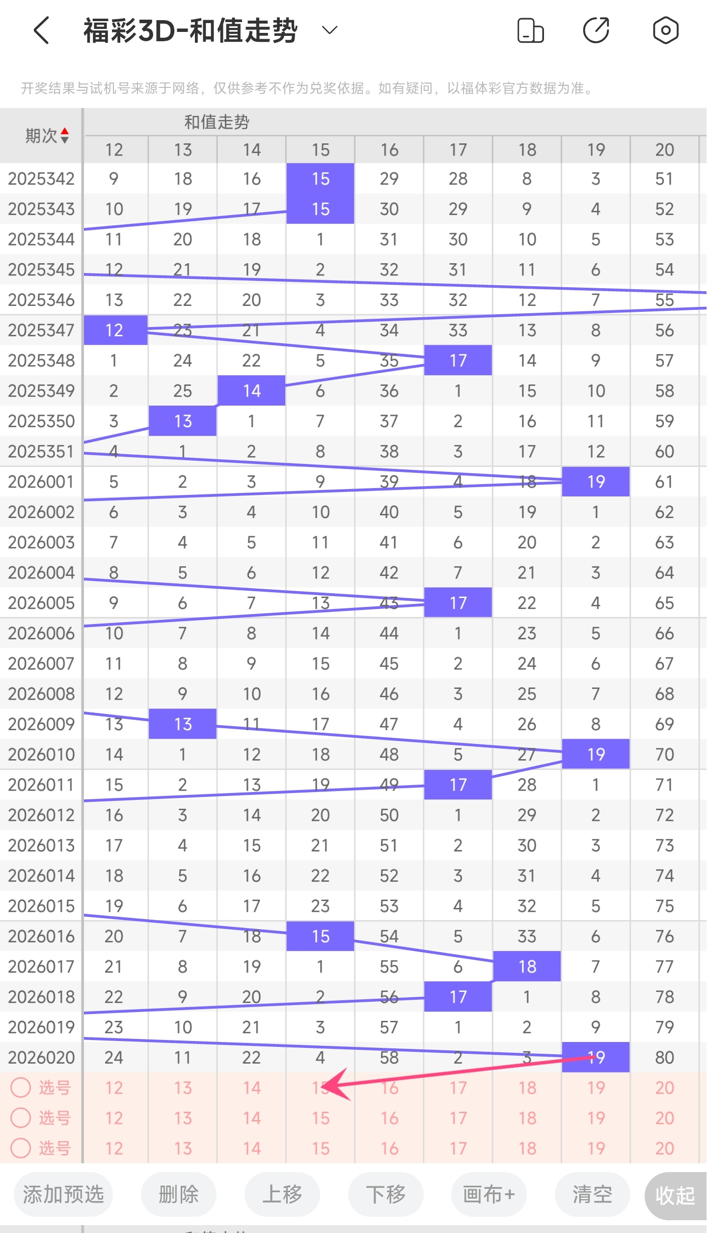 一、通过和值走势分析: