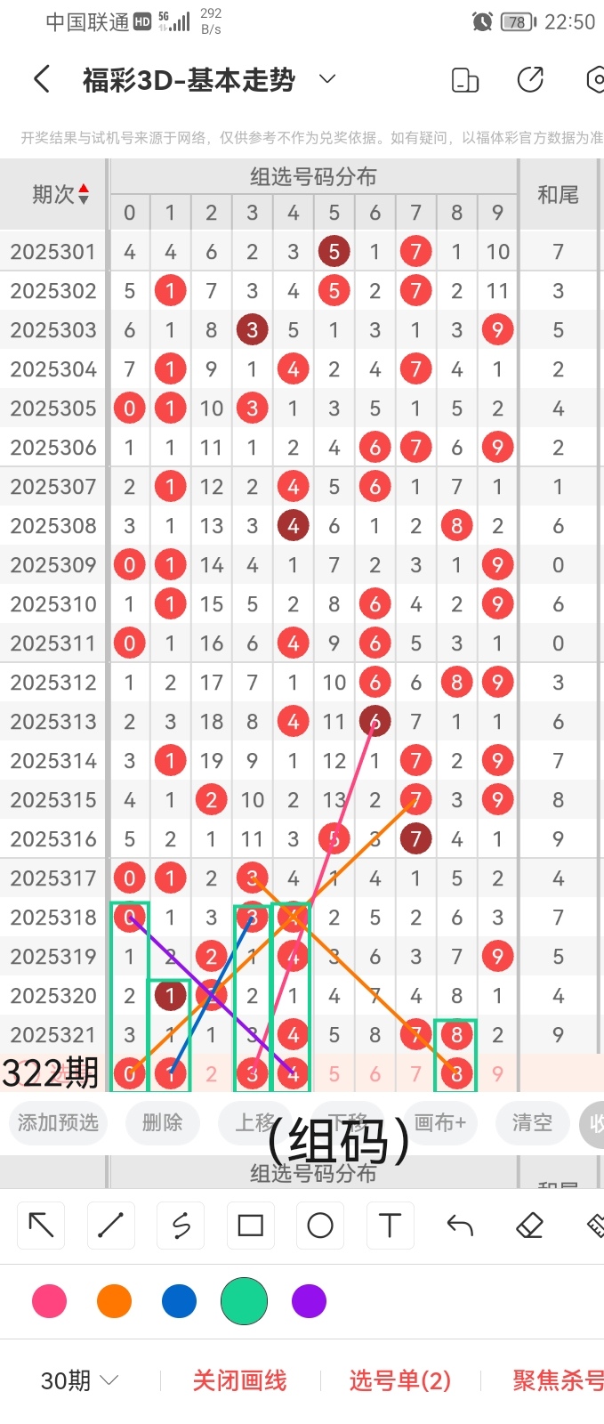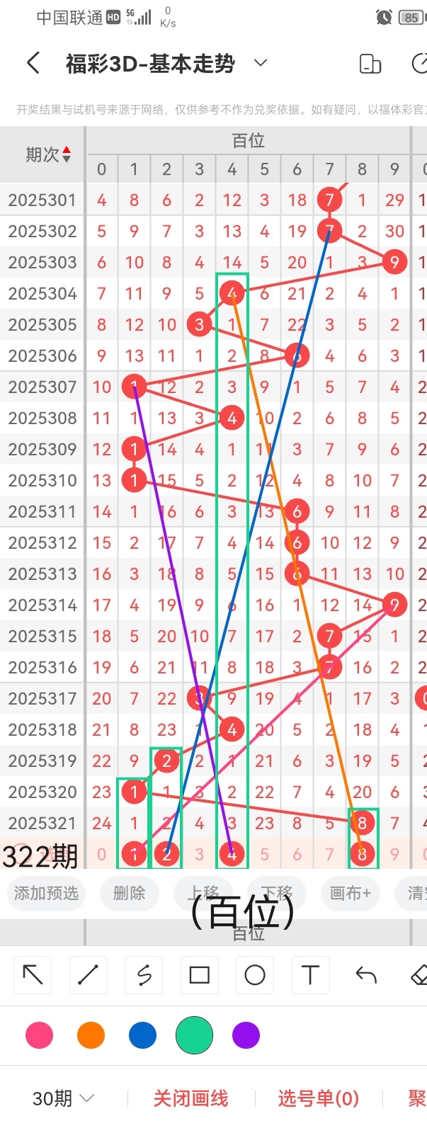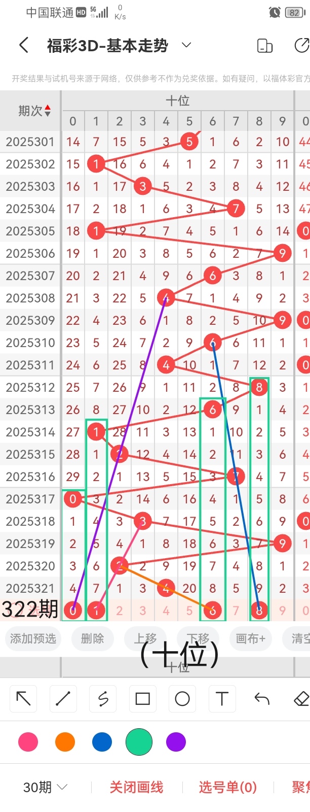 通过以上对上期的简单回顾,下面进入2025322期(下面简称本期)的选号分析: