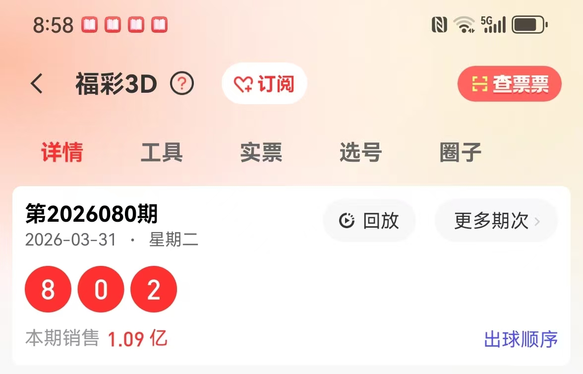 福彩3D2026第080回顾: