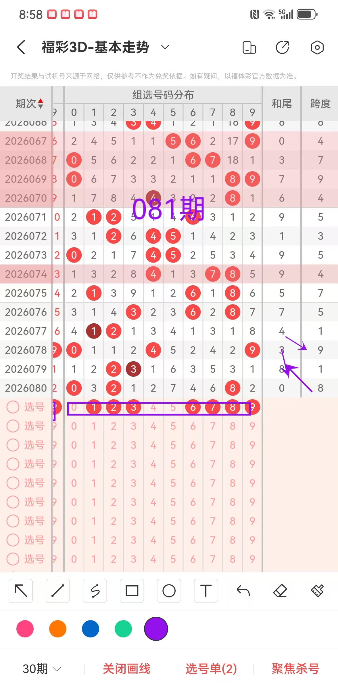 二、福彩3D2026第081期组选,尾,跨度,分析:
