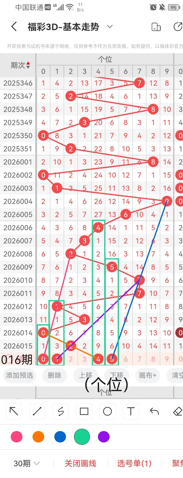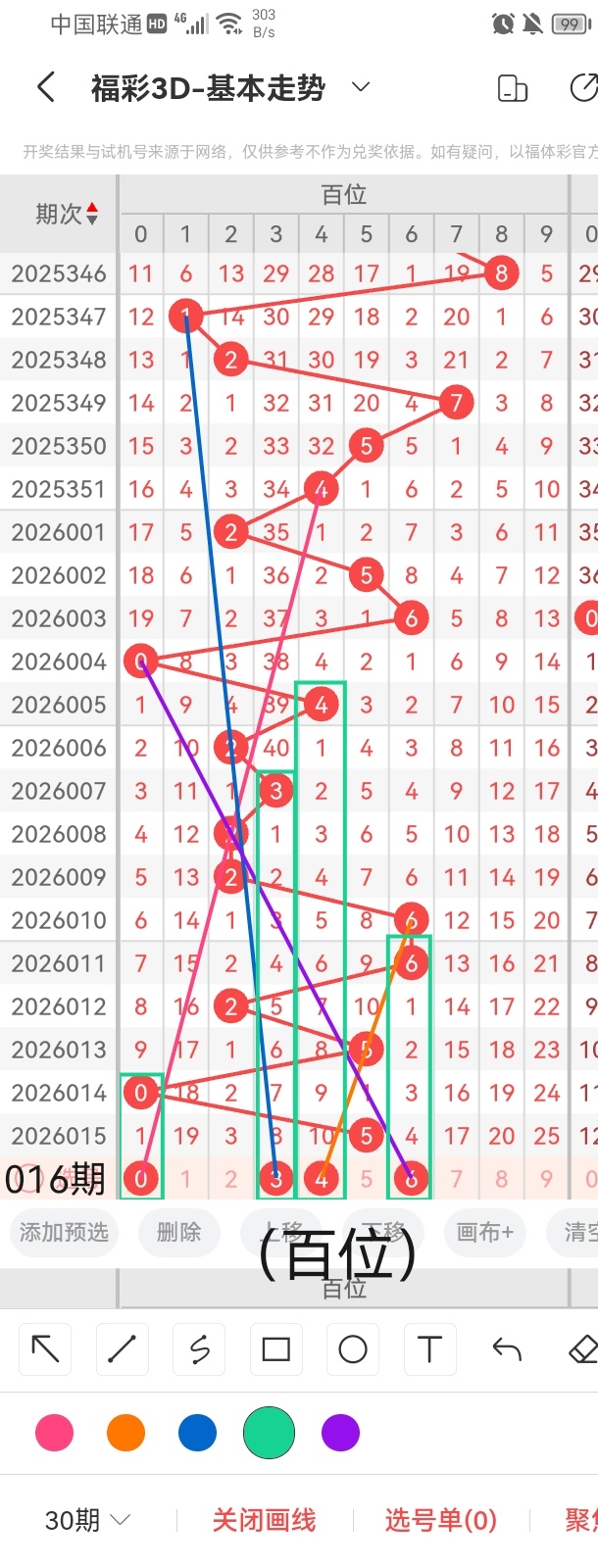 通过以上对上期的简单回顾,下面进入2026016期(下面简称本期)的选号分析: