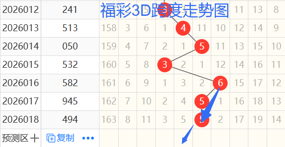 依次是53655跨度,按照路数转换关系来看,那么跨度我们暂定0369147跨 ,本期个人比较看好4 0 跨。