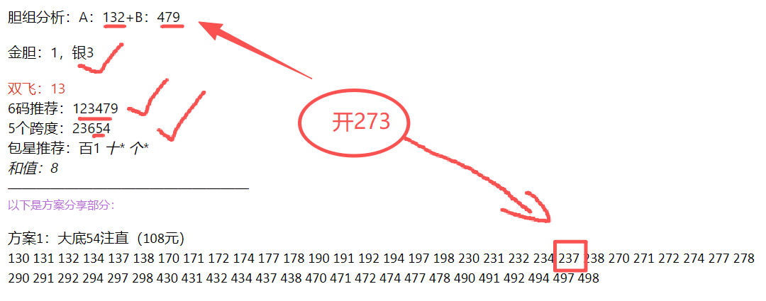 首先来看上期开奖号码为:273,和值为12。上期银胆3对,6码中组等,胆组条件依旧很好!!