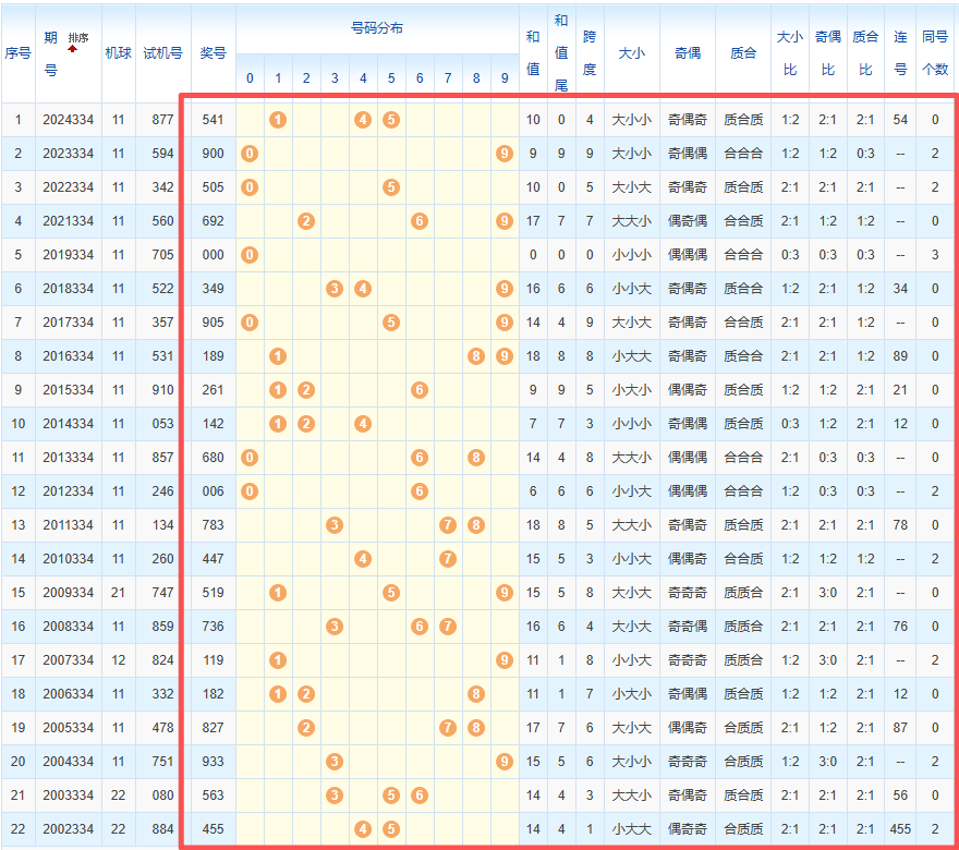 1、统计往年同期开奖号码
