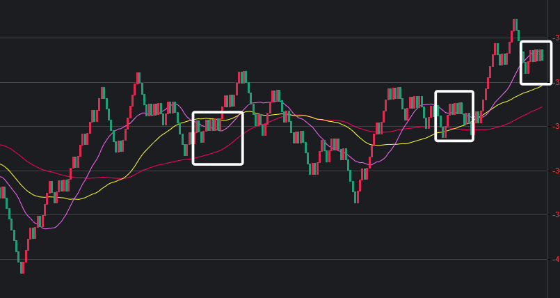 可以看到一些规律,在粉框中,如果一致,那么接下来这些跨度也会出。