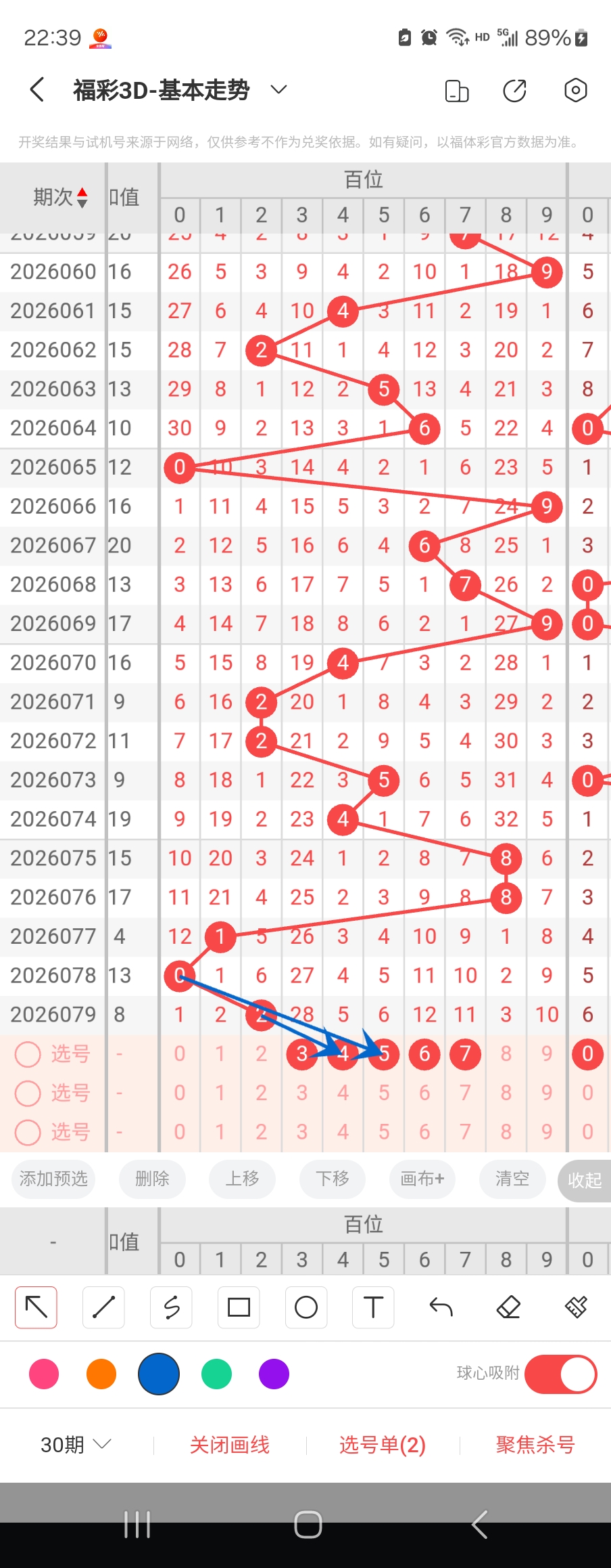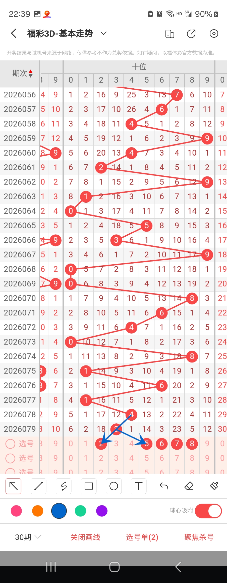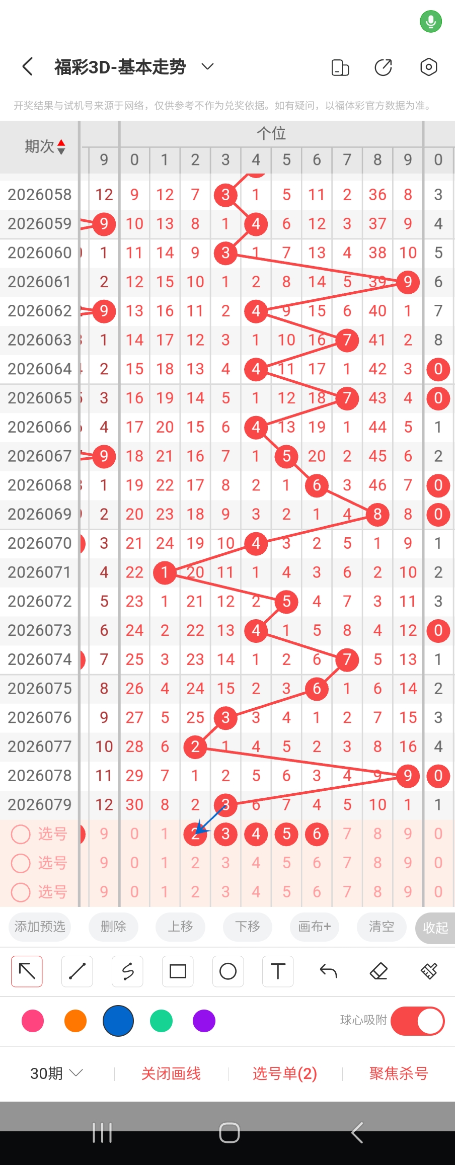 个位走势标注如下图;
