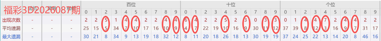 福彩3D 2026087期分析分享(上期大底中两组)