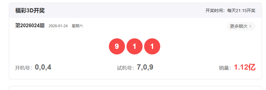 今晚 3D 开出 9-1-1,这组号码看似简单,实则包含了当前走势的三个极端信号: