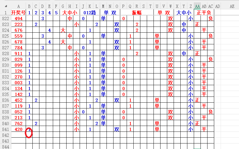 如上图2,单双分析,单数合尾好,02468