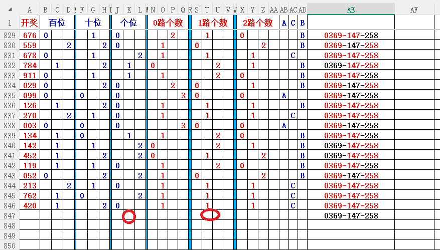 如上图2,012路分析,01路尾走比较好,关注0369147尾;