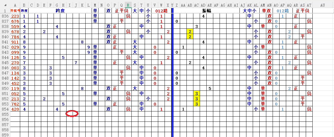跨度:就是开奖号,最大数减去最小数所得的数,就是跨度。