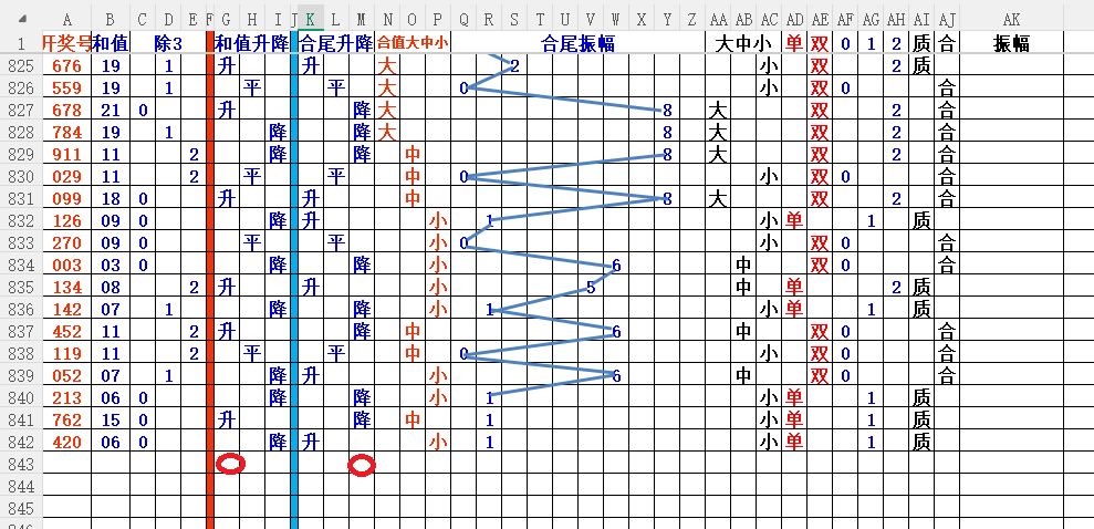 如上图3,和值升降平分析,和值升概率大,大于06和值