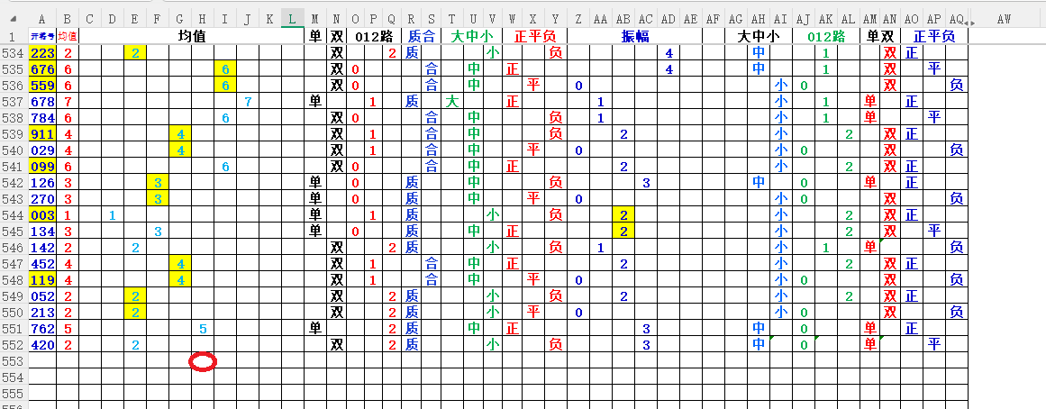 均值:就是开奖号每各数的总和除3,然后得到的余数,如果不够整除可以+1,-1,直到被整除得的数就是均值
