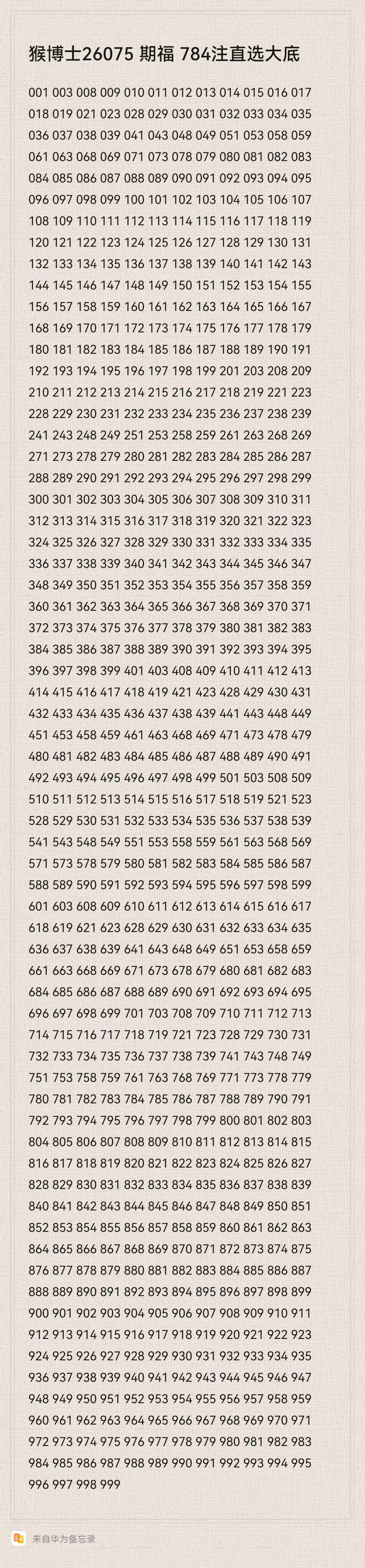 猴博士26075期福784注直选大底:(可以当母底用,然后进行缩水)
