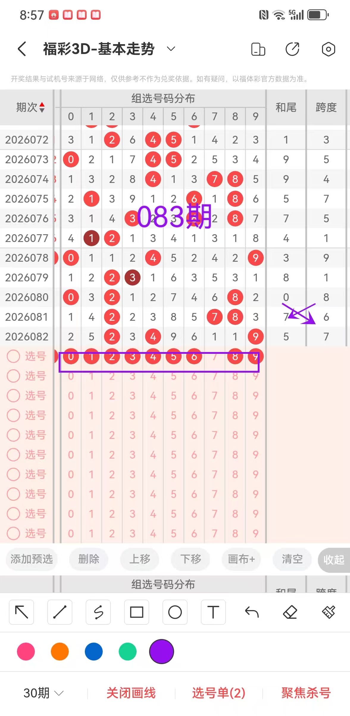 福彩3D083期,上期公推中直选,汇源专区中直溜溜,本期继续加油