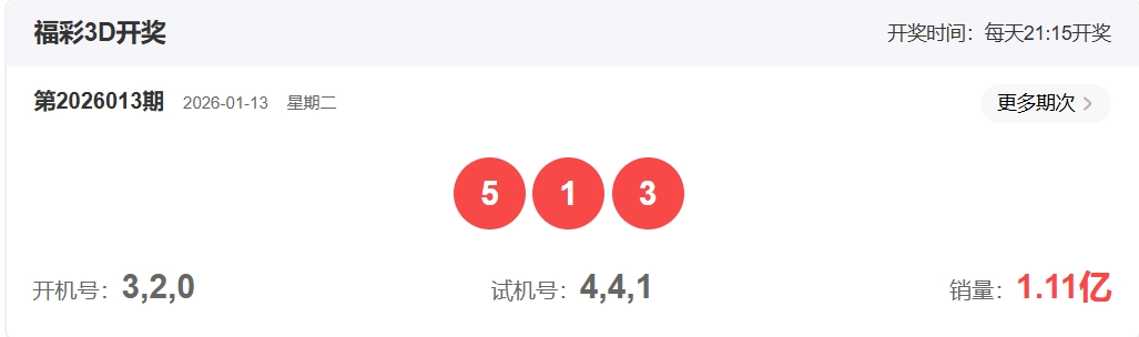 福彩3D第2026014期开奖513