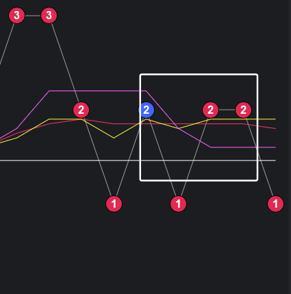 可以看到一些规律,在粉框中,如果一致,那么接下来这些跨度也会出。