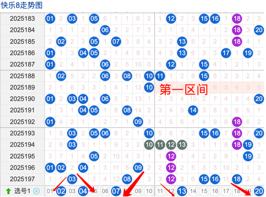 上期一区开5奖号(03.08.12.15.16.18.)上期回顾一区开5个奖号一区间的奖号在上期呈现了不变的趋势,本期先来看号码02具有一定的间歇性,近期比如有时会间隔 3 到5期次出现,整体出现频率较稳定,号码04活跃度近期较。有一定的间歇性,间隔上来说的话是很稳定的,整体走势有一定的波动性,有明显的冷热趋势变化,出现的频次近期比较.号码13活跃度相对不是很稳定,没有明显的连续出现态势,偶尔间隔多期会出现一次整体表现较冷近期出现的频次比一般