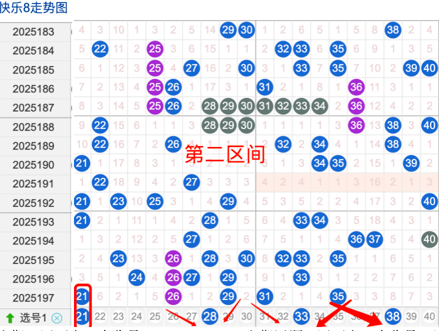 上期二区开出5个奖号(21.26.29.31.35)上期回顾二区开出5个奖号二区间在上期落位同比前期的话呈现了一个不变的落位趋势,先来看本期号码21整体活跃度较温热,在近 30 期里有一定的间歇性出现,不是每期都开,整体走势也是比较温热。号码28近期热度较稳定,间隔性很稳定,说明其在当前阶段活跃度是很稳定定注意防守。号码33近期活跃度算是很稳定近期是比较人热,有一定的间歇性近期整体走势相对平稳有特别明显的冷热趋势变化,号码3930期内活跃度较有明显的连续出现形态走势,整体表现比较温冷
