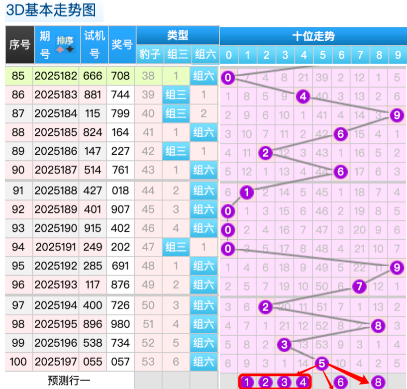 上期的3D个位开7号球,上期开出的是组按照形态的话本期打组六形态,上期的7号球的落位是个位上的一个冷回补码落位趋势,本期先来看1号球在个位还是有机会继续走出小号落位点这里要注意是一个小周期的落位趋势9号球和8号球是这里的落位点是两个号码的分界点这里注意防守一码就好了也是这里的两码走势都是非常好看的注意选择一码,再看3号球这里注意要防守顺位这里还是第二大冷号的落位趋势